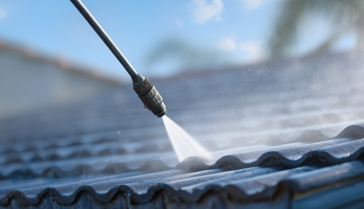 Removal of moss, algae, and debris from roof surfaces.